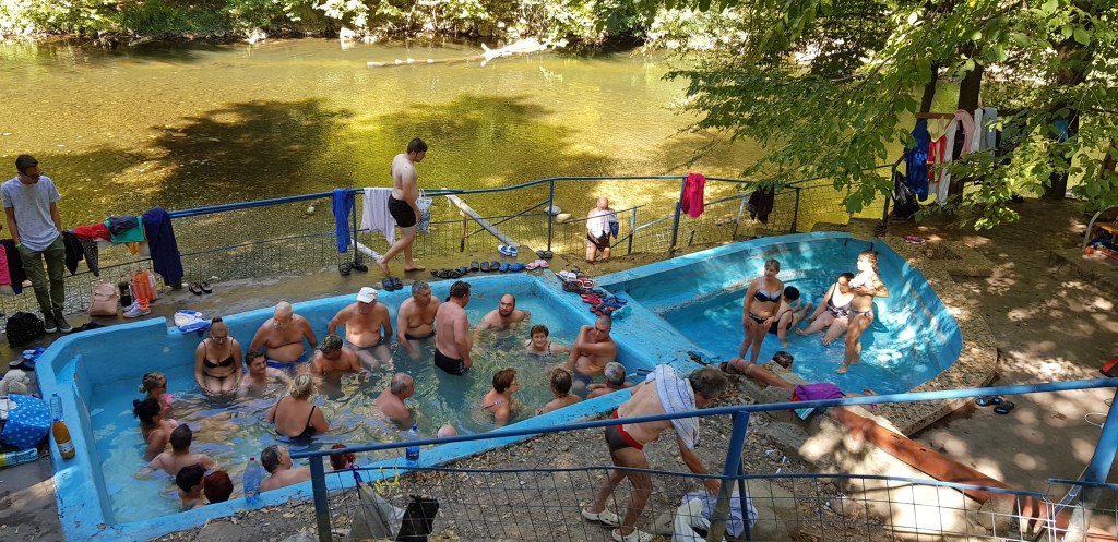 On the middle of the road it became suddenly crowded with lots of cars parking on the side. Apparently, there were out door thermal springs (in the middle of nowhere!!If you want to go there the coordination is 44.91770N 22.43678E).
